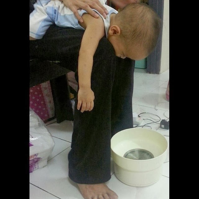 1. STEAM : Pastikan bayi dalam posisi meniarap atas peha kita [juga boleh letak atas bantal (di bawah perut), pastikan bantal itu tidak terlalu tebal]. Kemudian condongkan sedikit posisi bantal dengan kedudukan kepala bayi ke bawah dan kaki di atas, pastikan kaki lurus. DIINGATKAN, INI ADALAH PROSES SEPERTI NEBULIZER jugak.. Cuma kadar yang x sekuat nebulizer ofkos! Steam smpai wap abeh -tamat. atau 10-20 mins. whichever earlier!