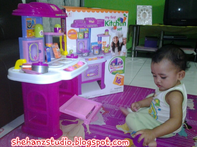 HD ckp, nak tolong Mommy masak. Tu yang Mommy decide nak beli dapur untuk dia.. Hahahahaha.. Kaco sgt Mommy berdiri kt dapo kan? Heee