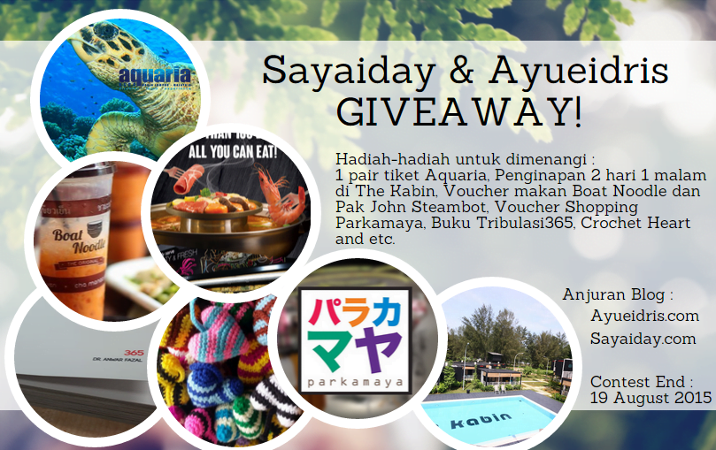 Jom ramai-ramai join giveaway yang dianjurkan di blog Sayaiday.com dan Ayueidris.com